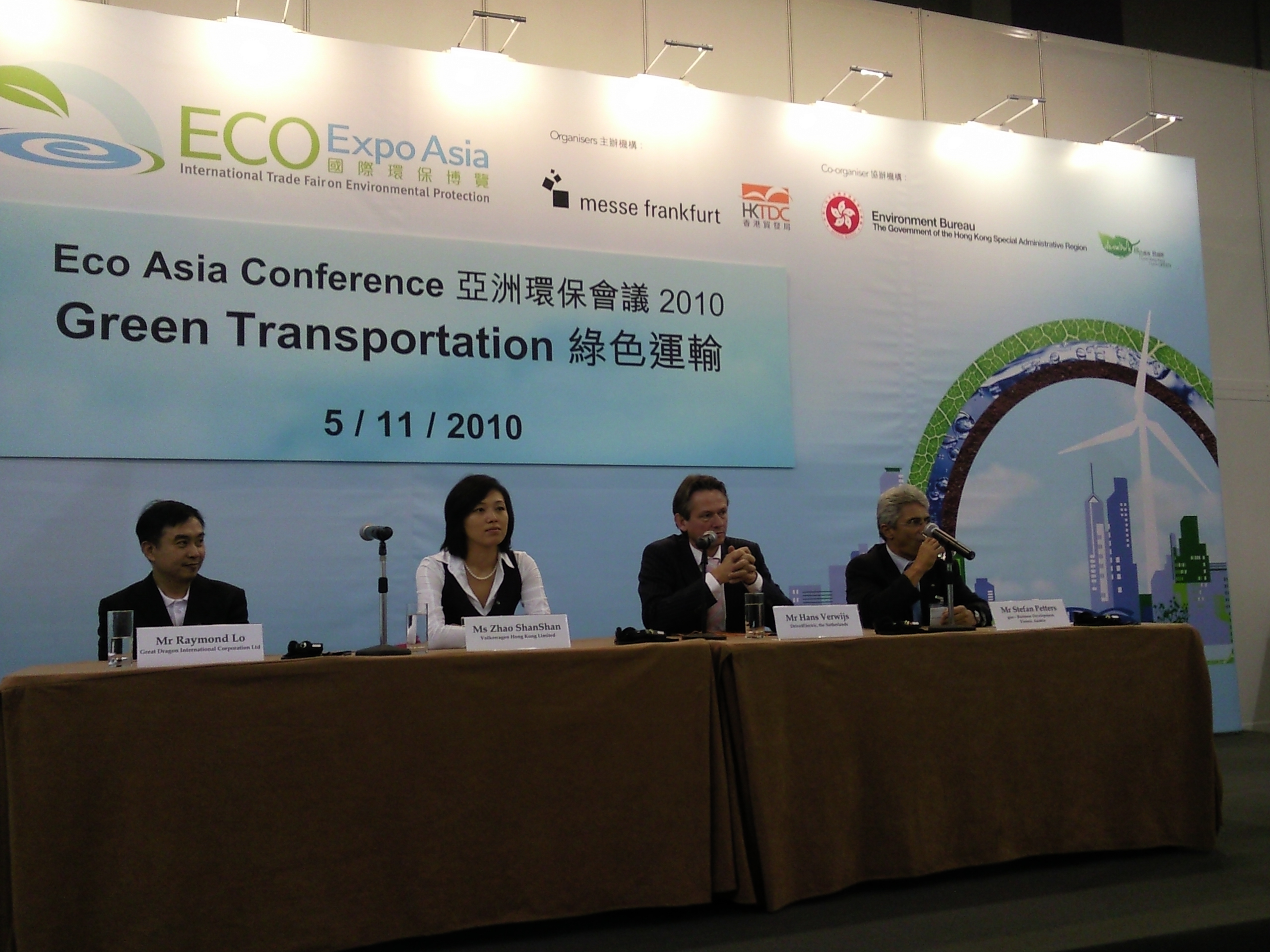 The Eco Asia Conference hold in the Expo discussed the feasibility of electric vehicles and the technology update of the state-of-art. On the board discussion, delegates from Great Dragon Int' Corp Ltd, Volkswagen HK Ltd, JHV Interim Management and Guo-Business Development Consult share viewpoints with audiences.